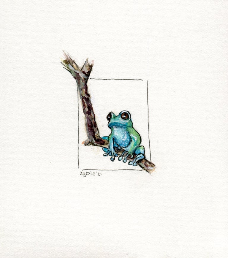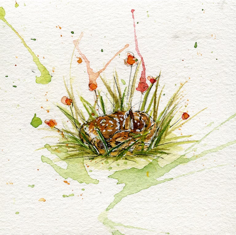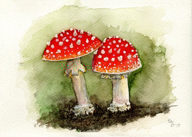 Ich arbeite überwiegend mit Aquarell, Gouache und Künstlerfarbstiften – und setze dabei auf umweltfreundliche Materialien.